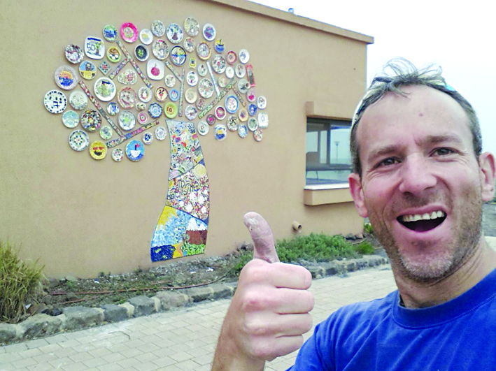 אריאל הרכיב והתקין את היצירה על קיר בביה"ס וכך נוצרה יצירת פאר מרשימה ויפהפייה המעטרת את הבית.