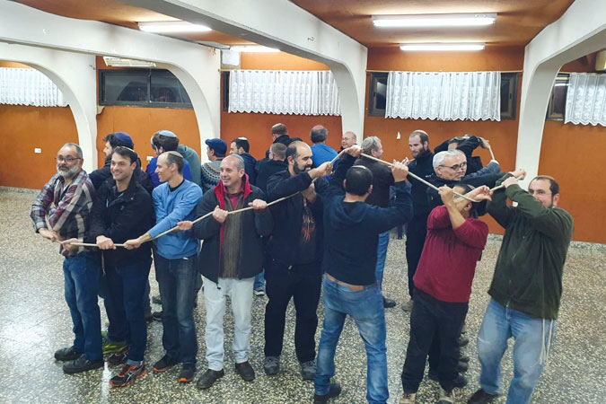 השנה, חל מפנה במקומנו והצלחנו לגייס גבר שעליו הוטלה המשימה: ערב תרבותי לגברים. הרעיון המרכזי הוא שכמו שקבוצת הנשים יודעות להעצים את החוסן הקהילתי דרך נקודות החוזק שלהן, כך גם הגברים צריכים וגם, בינינו, מגיע להם.(פרגון אמיתי!). אז הגבר בוועדה הסתער על המשימה וקבע יעד מספרי שאליו צריך לשאוף. הפרסום היה אטרקטיבי, בליווי פניות אישיות. התכנית כללה פעילות odt, בהדרכת יניב לוי ופעילות מאסטר-שף, עם נוי ובניה רחימי, מאבנ"י אית"ן. הגברים אכן הגיעו בפתיחות ובשמחה והקשרים שנוצרו תוך כדי הפעילות הניבו תוצאות גסטרונומיות וחברתיות מלכדות.