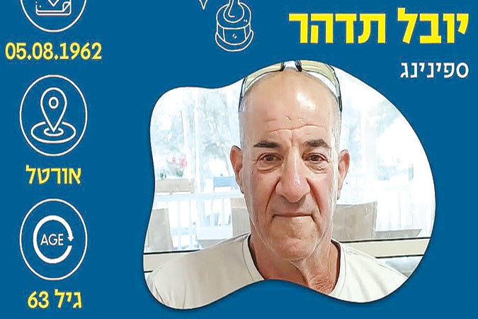 ספורטאי השבוע של מחלקת הספורט, במרכז הקהילתי גולן הוא, יובל תדהר, מתאמן ספינינג, בן 63, מאורטל יובל תדהר – אוטוטו בן 63, מקיבוץ אורטל. הספורט