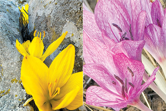 פריחת החלמוניות והסתווניות ברכס בשנית – תצוגת טבע צהובה וסגולה בלב הגולן. הזדמנות אחרונה לצפות בשניים ממבשרי הסתיו הנדירים והיפים בפרחי ארצנו. מסלול מתאים למשפחות